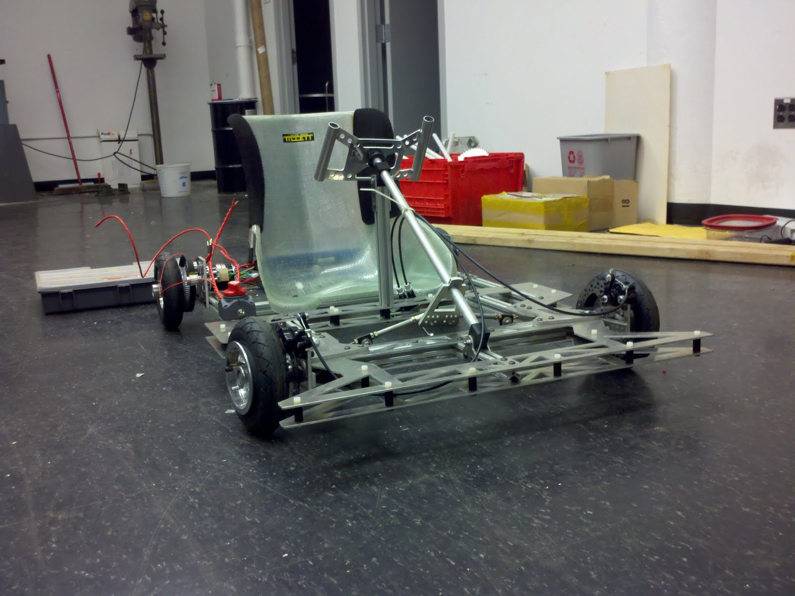 gotten back together with the Summer Engineering group and we are currently building a Mini electric go kart for this summers project. Our goals are to make it weigh 50 pounds or less and be easy to use etc. So far we have built the frame out of 1/8